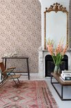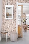 Créez un look vintage cosy et chaleureux chez vous avec ce papier peint à motif de fleurs vintage en vieux rose, terre cuite et vert. Le papier peint évoque un merveilleux sentiment nostalgique et avec des accessoires vintage et des meubles rétro, vous complétez l'atmosphère.