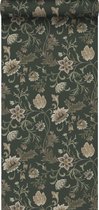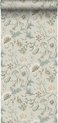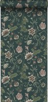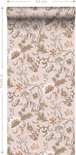 ESTAhome papier peint fleurs vintage vieux rose, terre cuite et vert - 139478 - 0,53 x 10,05 m