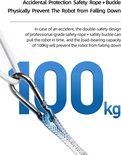 Le robot est équipé dedétection sans cadre , de sorte qu'il reconnaît automatiquement lorsqu'il atteint un bord sans cadre et recule pour éviter de tomber. De plus, la corde de sécurité offre une protection supplémentaire lors de l'utilisation.