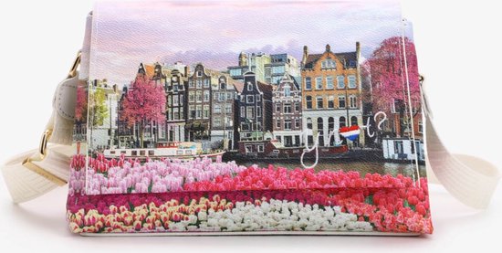 Ce sac isotherme est issu de la collection Tulipes de la marque italienne Y Not ? et présente une impression joyeuse de maisons de canal hollandaises et de tulipes. Le sac est doté d'une large bandoulière blanche réglable pour que vous puissiez transporter confortablement le sac à la longueur souhaitée.