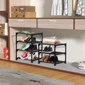 Selbro ® Ce meuble à chaussures polyvalent offre une solution intelligente pour organiser différents espaces de votre maison. Avec une taille compacte de 43 cm de long, 30 cm de large et 41 cm de haut, ce support aide à réduire efficacement l'encombrement dans les chambres, les cuisines, les balcons et plus encore. La conception empilable vous permet de la personnaliser selon vos besoins spécifiques ; Retirez simplement une couche pour faire de la place pour des bottes ou des accessoires plus grands, ou achetez plusieurs ensembles à empiler verticalement pour un stockage supplémentaire. Le support convient non seulement pour ranger des chaussures, mais également des CD, des livres, des speelgoed, des plantes et d'autres objets du quotidien. Dans la cuisine, il peut même servir d'espace de rangement pour les contenants alimentaires et les outils de jardin. Fabriqué à partir de tissu non tissé résistant à l'eau, de connecteurs en plastique renforcés et de tubes épais en acier inoxydable, le support offre une solution de stockage solide et durable qui peut supporter des articles plus lourds. La structure simple permet un assemblage rapide sans outils, vous offrant un meuble à chaussures fonctionnel en quelques secondes. Maintenance est simple ; Il suffit de l'essuyer avec un chiffon humide pour le garder propre. Ce meuble à chaussures est le choix idéal pour ceux qui recherchent une solution de rangement pratique et peu encombrante.