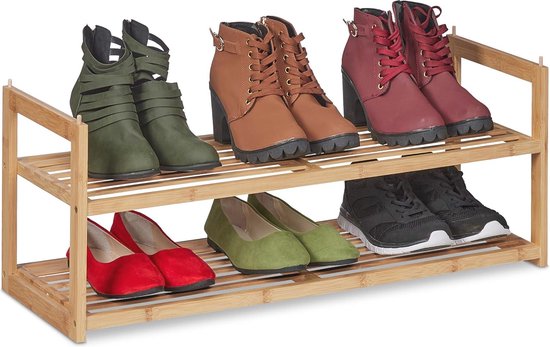 Étagère à chaussures empilable en Bamboe avec 2 niveaux pour 6 paires de Chaussures pour femmes - Conception peu encombrante pour le couloir ou la chambre