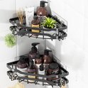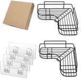 Étagère de douche d'angle autocollante Unyqoos®, support de rangement avec 4 crochets pour salle de bain sans perçage, 2 pièces, noir