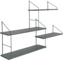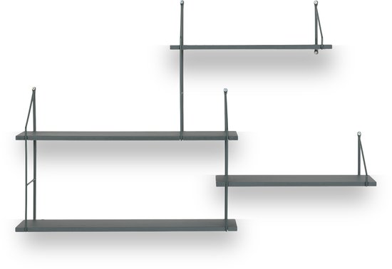 Le support mural Mady a un cadre en acier et les quatre étagères sont en bois. Le cadre et les étagères ont une couleur verte. Le support mural mesure 99 cm de large, 17,5 cm de profondeur et 62 cm de haut. Ce support mural asymétrique est parfait pour remplir un mur vide dans la maison. Étant donné que les points de fixation se trouvent dans le cadre, le support mural semble flotter. Remplissez le design ludique avec des accessoires amusants, des cadres photo et des plantes.