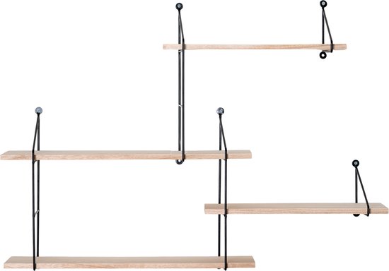 Etagère murale Newton avec 4 tablettes - chêne/noir - Actona - Tablettes murales - Brun - Mélamine|Panneaux de particules - Tablettes murales