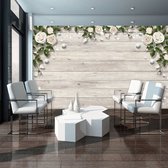 Papier peint photo - Papier peint intissé - Planches de bois avec roses Witte - 208 x 146 cm