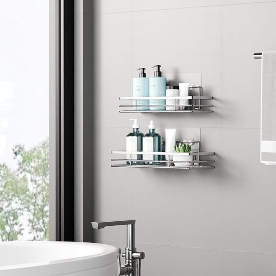 - Grande capacité : offre suffisamment d'espace pour le savon, le shampoing, le nettoyant pour le visage, la lotion, la brosse, etc. 4 crochets mobiles servent à accrocher des serviettes ou une éponge de douche.