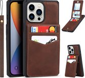 Étui à cartes pour Apple iPhone 13 Pro Max | Couverture arrière en cuir PU | Cas de téléphone de Luxe | Porte-cartes | Marron