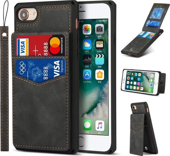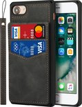Étui à cartes pour Apple iPhone 8 | iphone 7 | Couverture arrière en cuir PU | Cas de téléphone de Luxe | Porte-cartes | Noir