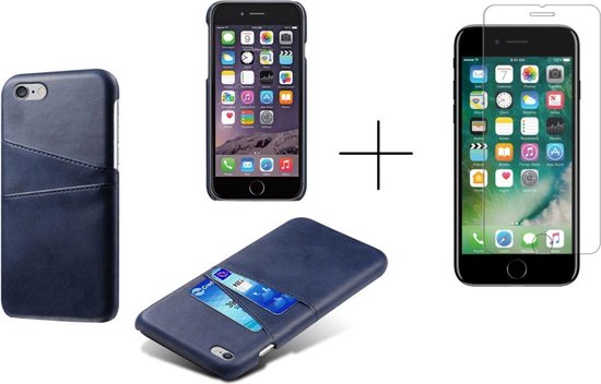 Étui à cartes pour Apple iPhone 8 | iPhone 7 | iPhone SE 2020 | Couverture arrière en cuir PU | Cas de téléphone de Luxe | Porte-cartes | Blauw + 1x Protecteur d'écran iPhone 8
