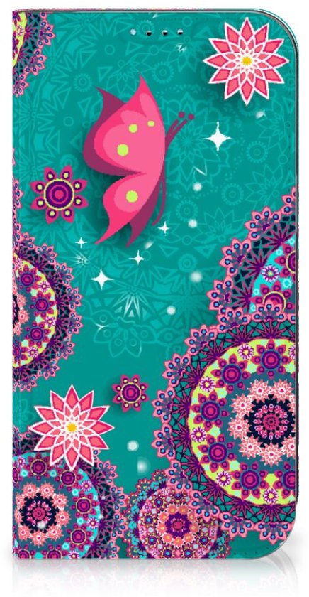 Étui à rabat adapté à iPhone 15 Smart Cover Cercles et papillons