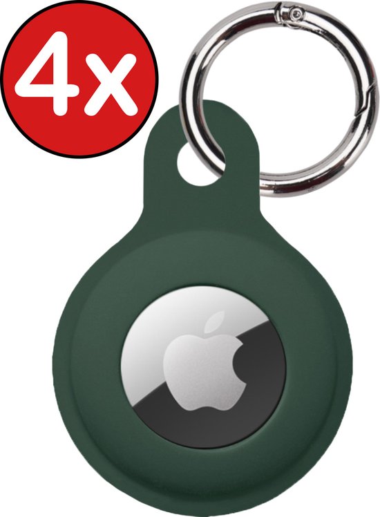 Étui adapté pour étui porte-clés Apple AirTag Pendentif en Siliconen - Étui adapté pour étui porte-clés pendentif Apple AirTag - Vert foncé - 4 PACK