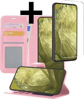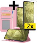 Étui adapté pour Google Pixel 8a Case Book Case Cover Wallet Cover avec 2x protecteur d'écran - Étui adapté pour Google Pixel 8a Case Bookcase Cover - Rose clair