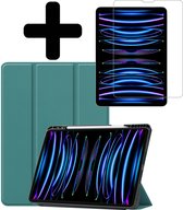 Étui adapté pour iPad Pro 2022 (12,9 pouces) Étui de Luxe avec protecteur d'écran - Étui adapté pour iPad Pro 12,9 pouces (2022) - Vert foncé