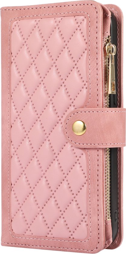 Étui adapté pour iPhone 14 - Bookcase - Porte-cartes - Portefeuille - Cordon - Simili cuir - Rose