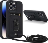 Étui adapté pour iPhone 14 Pro Max Cord Case avec porte-carte cordon Zwart - oTronica