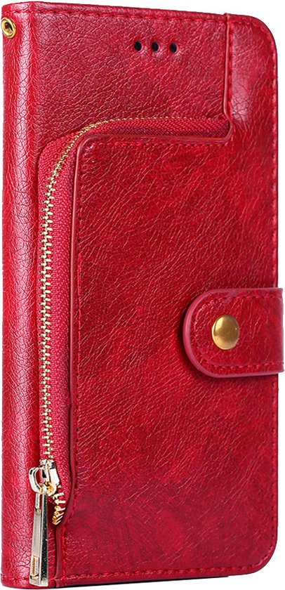 Étui adapté pour iPhone 16 Pro Max - Bookcase - Cordon - Porte-cartes - Portefeuille - Fermeture éclair - Simili cuir - Rouge