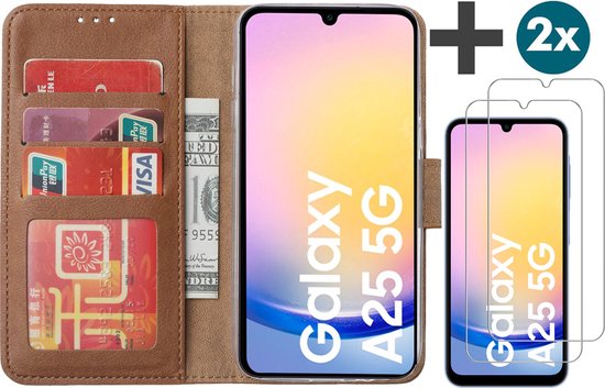 Coque avec 2 films de Protecteurs d'écran pour Samsung Galaxy A25 – Bookcase Arara avec porte-cartes