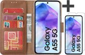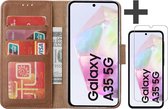 Étui avec protecteur d'écran adapté pour Samsung Galaxy A25 - Bibliothèque Arara avec porte-cartes - Marron