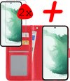 Etui Bookcase Samsung Galaxy S22 Avec 2x Protecteurs D'écran - Housse Etui Samsung Galaxy S22 - Protecteur D'écran Samsung Galaxy S22 2x - Rouge