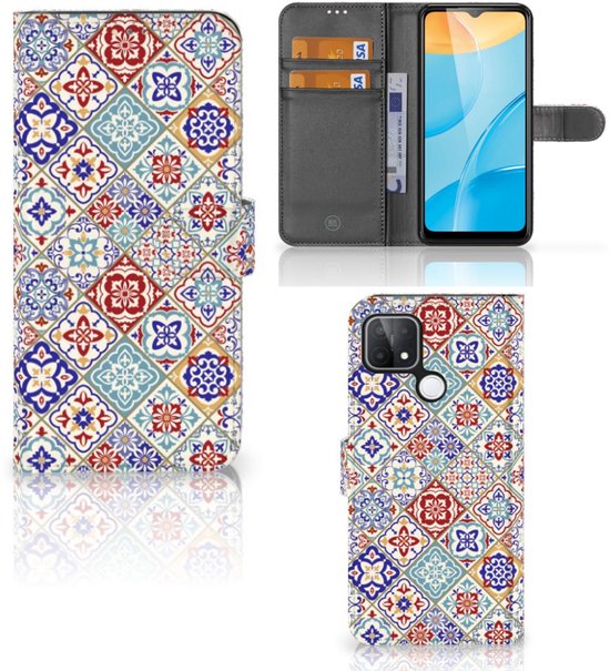 Étui de livre avec photo OPPO A15 Étui pour téléphone portable Couleur des carreaux