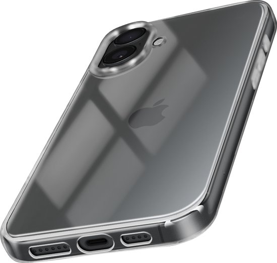 Coque pour iPhone 16. Mince de 1,5 mm d'épaisseur. Conception en silicone souple et durable. Bloc caméra protégé et bord d'écran surélevé. Poignée antidérapante. Le design transparent montre la beauté du téléphone. Les découpes offrent un accès libre aux ports et connexions. Boutons redessinés.