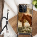 Étui de téléphone adapté à Apple iPhone 14 Pro - Cheval - Léger - Pâturage - Siliconen - Bandoulière - Coque arrière avec cordon - Étui de téléphone avec cordon - Étui avec corde Étui de téléphone