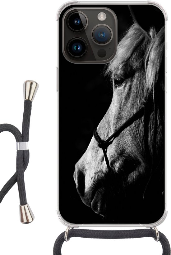 Étui de téléphone adapté à Apple iPhone 14 Pro - Cheval - Licol - Léger - Siliconen - Bandoulière - Coque arrière avec cordon - Étui de téléphone avec cordon - Étui avec corde Étui de téléphone