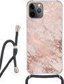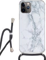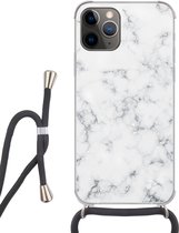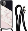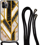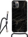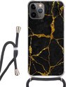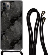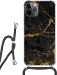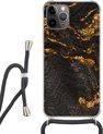Étui de téléphone adapté à iPhone 11 Pro - Imprimé marbre - Or - Zwart - Aspect imprimé marbre - Luxe - Glitter - Siliconen - Bandoulière - Coque arrière avec cordon - Étui de téléphone avec cordon - Étui avec corde Étui de téléphone