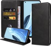 Étui de téléphone Smartphonica adapté pour Oppo A76 / A96 Étui en similicuir avec fermeture magnétique et Porte-cartes Étui à rabat - Zwart adapté pour Oppo A76;Oppo A96