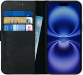Étui en cuir iPhone 16 Plus - Solidenz Bookcase Étui en cuir iPhone 16 Plus - Cuir véritable - Étui téléphone avec porte-cartes - Étui en cuir pleine fleur - Noir