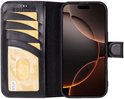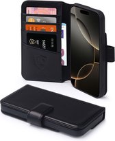 Étui en cuir iPhone 16 Pro - Solidenz Bookcase Étui en cuir iPhone 16 Pro - Cuir véritable - Étui téléphone avec porte-cartes - Étui en cuir pleine fleur - Noir
