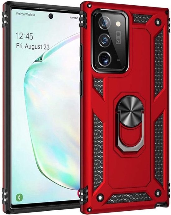 Étui LuxeBass adapté à l'étui Samsung Galaxy Note 20 - Anti-Shock Hybrid Ring Armor Rouge