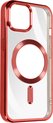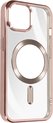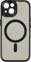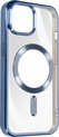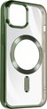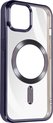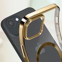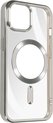 Coque en Siliconen avec contour chromé pour Apple iPhone 15. Chargez facilement le téléphone avec un chargeur MagSafe et protégez-le en même temps grâce à l'anneau magnétique. Compatible avec les accessoires MagSafe. Bloc caméra protégé. Fonctions accessibles.
