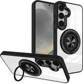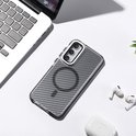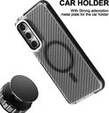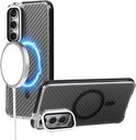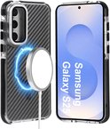 Étui Magsafe adapté pour Samsung S25 / S24, étui en carbone Heavy Duty Zwart avec côtés renforcés, MagSafe et béquille d'appareil photo