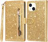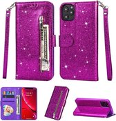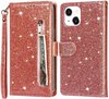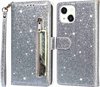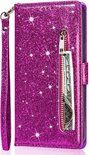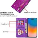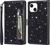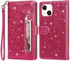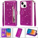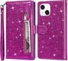 Étui portefeuille - Étui portefeuille - Fermeture éclair à Glitter scintillantes - Étui de téléphone avec Kord Convient pour : Apple iPhone 15 - Violet