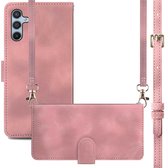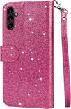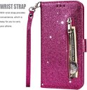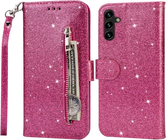 Étui portefeuille - Étui portefeuille - Fermeture éclair à Glitter scintillantes - Étui de téléphone avec Kord Convient pour : Samsung Galaxy A34 4G & 5G - Rose