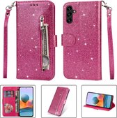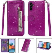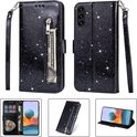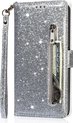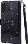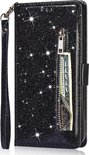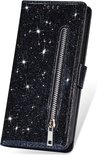 Étui portefeuille - Étui portefeuille - Fermeture éclair à Glitter scintillantes - Étui de téléphone avec Kord Convient pour : Samsung Galaxy S23 - Zwart