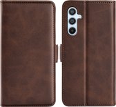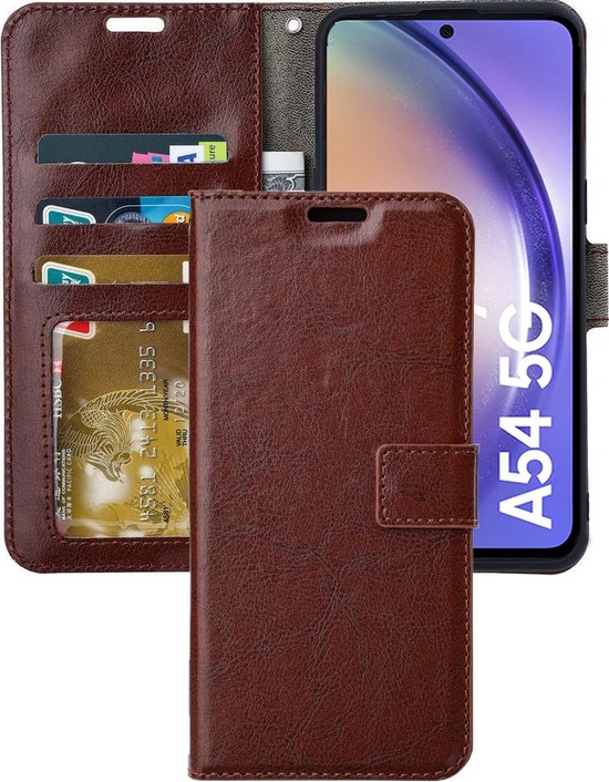 Elite Bookcase Adapté pour : Étui Samsung Galaxy A54 - Porte-cartes - Portefeuille - Simili cuir - Marron