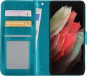 Étui portefeuille pour Samsung S21 Ultra avec protecteur d'écran - Étui portefeuille pour étui portefeuille Samsung Galaxy S21 Ultra - Turquoise