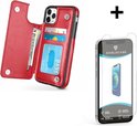 Étui portefeuille ShieldCase Convient pour Apple iPhone 12 / 12 Pro - 6,1 pouces - rouge + protecteur d'écran en verre