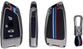 Étui pour clé de voiture kwmobile adapté à la clé de voiture BMW Smart Key à 3 boutons - Étui pour clé de voiture en noir / bleu
