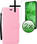 Étui pour Google Pixel 8a - Étui à rabat avec 2 films de protection d'écran - Étui pour Google Pixel 8a - Rose clair