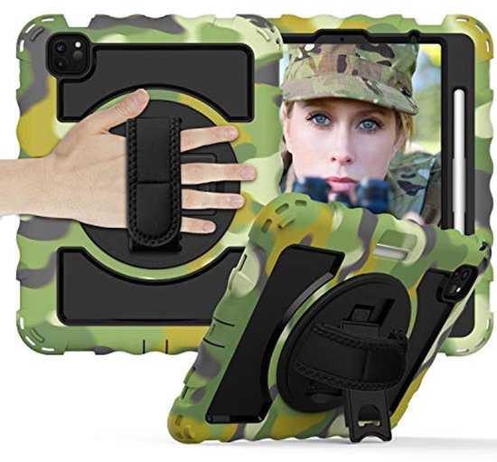 Offrez à votre iPad la protection ultime avec cet étui de protection camouflage robuste, spécialement conçu pour l'iPad.iPad Pro 11 pouces (2021) etiPad Air 5 . Idéal pour les déplacements, à la maison ou à l'école – robuste, fonctionnel et d'apparence cool.