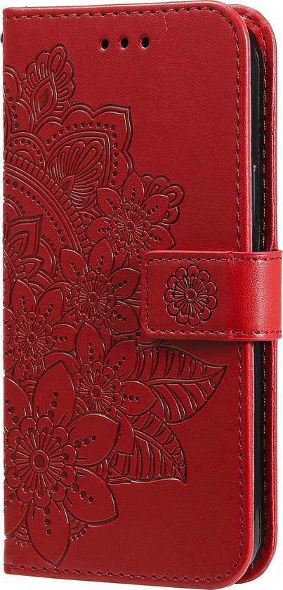 Étui pour iPhone 11 Book Case avec motif - Porte-cartes - Portefeuille - Imprimé floral - Apple iPhone 11 - Rouge