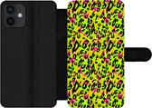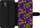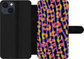 Étui pour iPhone 13 Bookcase - Imprimé animal - Arc-en-ciel - Néon - Avec compartiments - Étui portefeuille avec fermeture magnétique