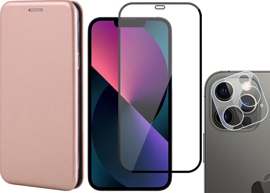 Étui pour iPhone 13 Pro - Étui portefeuille - Or rose - Avec protecteur d'écran complet et protecteur d'écran pour appareil photo