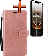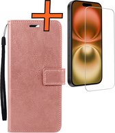 Étui adapté pour iPhone 16 Plus Cover Bookcase Flipcase Book Cover avec protecteur d'écran - Étui adapté pour iPhone 16 Plus Case Book Case - Or rose
