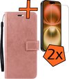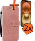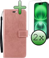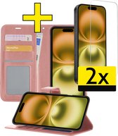 Étui adapté pour iPhone 16 Plus Case Book Case Cover Flip Cover Wallet Bookcase avec 2x protecteur d'écran - Or rose