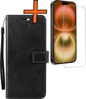 Étui adapté pour iPhone 16 Plus Cover Bookcase Flipcase Book Cover avec protecteur d'écran - Étui adapté pour iPhone 16 Plus Case Book Case - Zwart